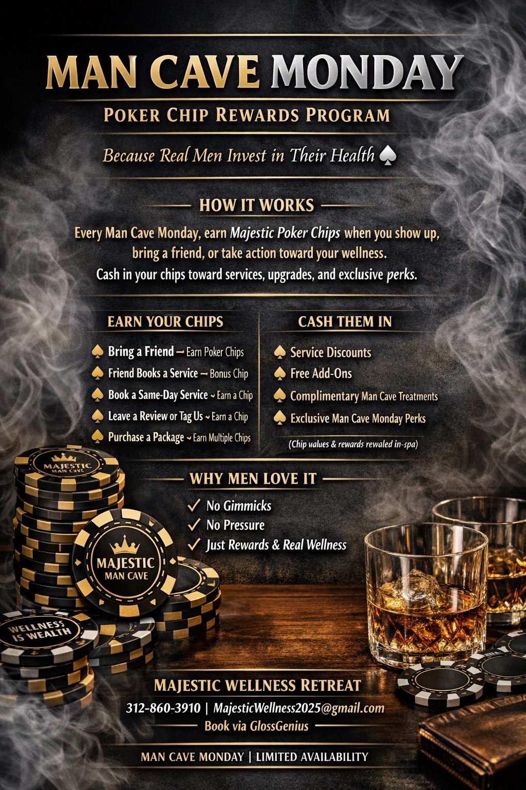 We’re currently looking for 4–10 hosts each month to lead unforgettable Man Cave Monday experiences. As a host, you’ll enjoy complimentary or discounted services, bring your circle and set the vibe, be featured as an official Man Cave Host, and receive exclusive perks, poker chips, and VIP rewards. This opportunity is perfect for entrepreneurs, community leaders, content creators, and men who enjoy hosting, connecting, and building community.